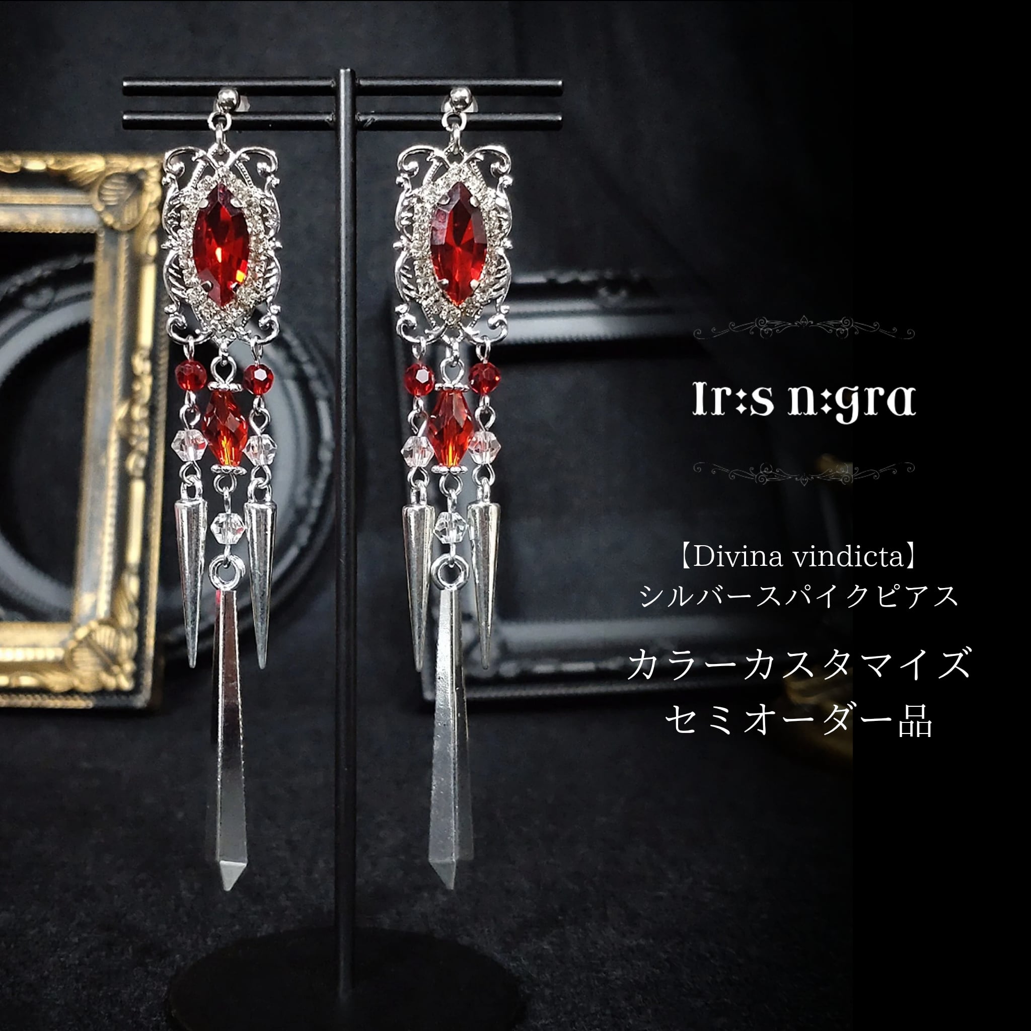 大ぶりのスパイクチャームが大きく揺れる、存在感のあるロングピアスです。